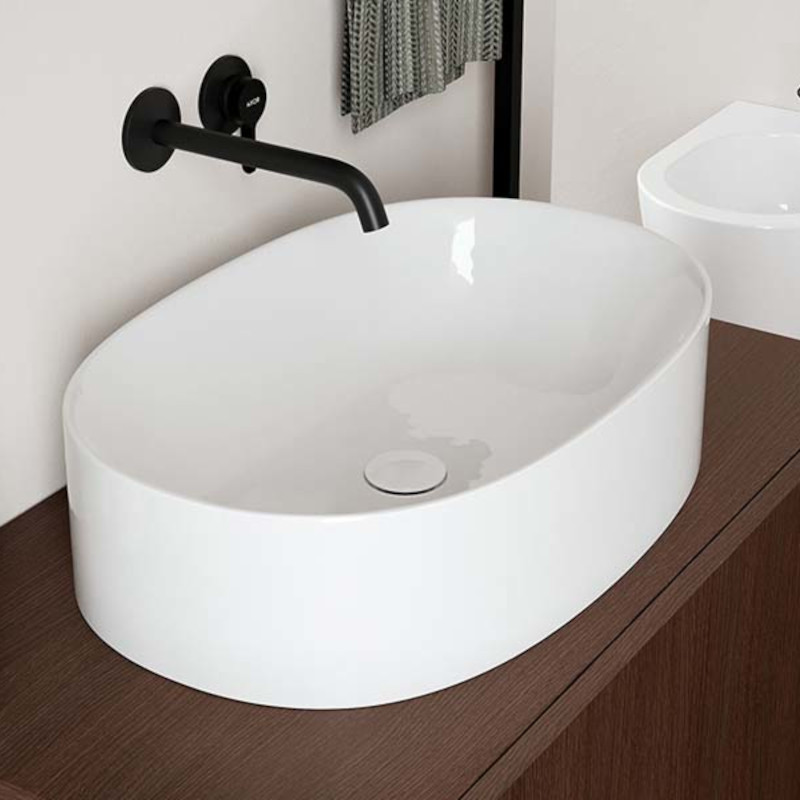 SCARABEO SKINNY 5409 Раковина накладная без отверстия под смеситель, без слива-перелива. Размеры: 60x40x15h см. Цвет White.