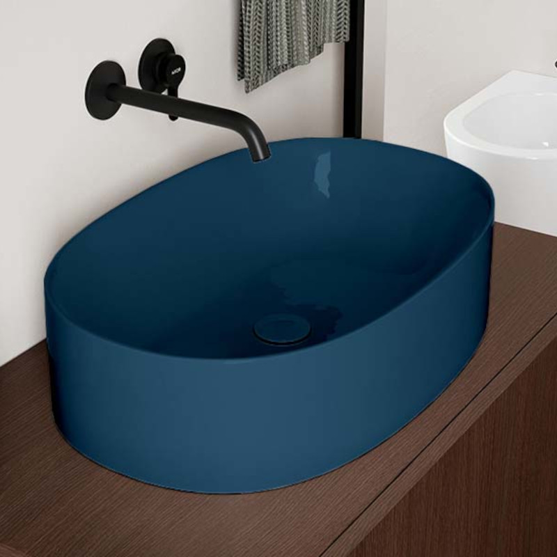 SCARABEO SKINNY 5409 Раковина накладная без отверстия под смеситель, без слива-перелива. Размеры: 60x40x15h см. Цвет Glossy Ocean.