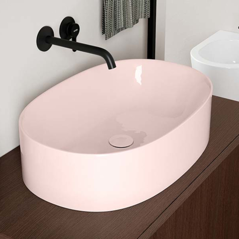 SCARABEO SKINNY 5409 Раковина накладная без отверстия под смеситель, без слива-перелива. Размеры: 60x40x15h см. Цвет Glossy Antique pink.
