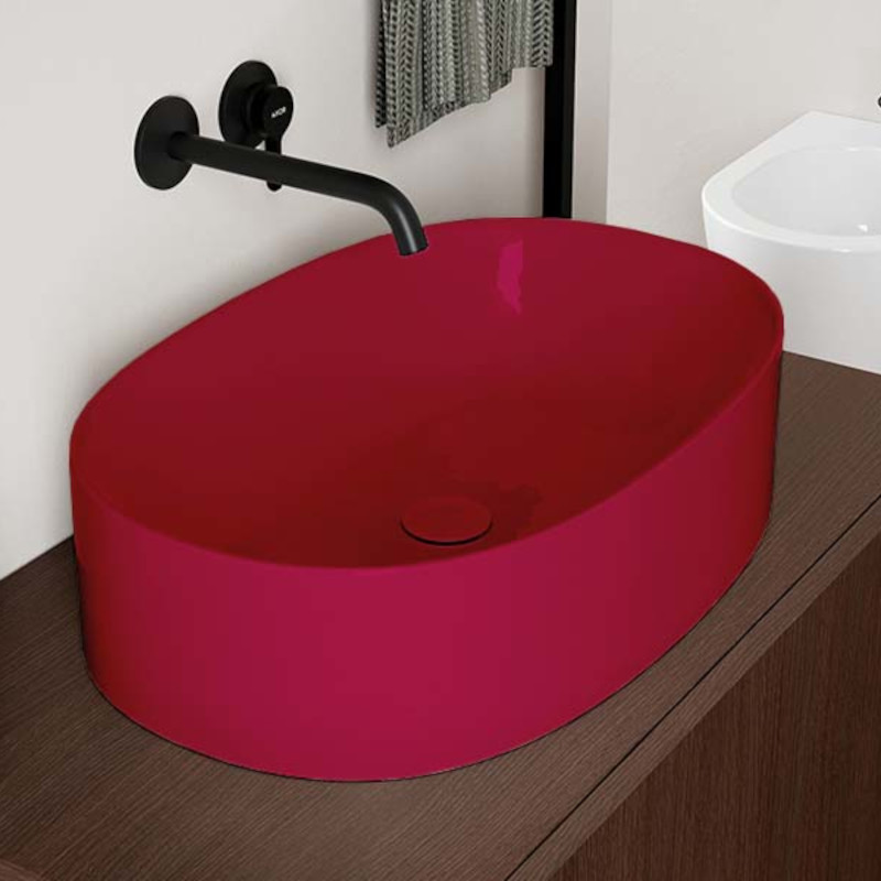 SCARABEO SKINNY 5409 Раковина накладная без отверстия под смеситель, без слива-перелива. Размеры: 60x40x15h см. Цвет Cherry.