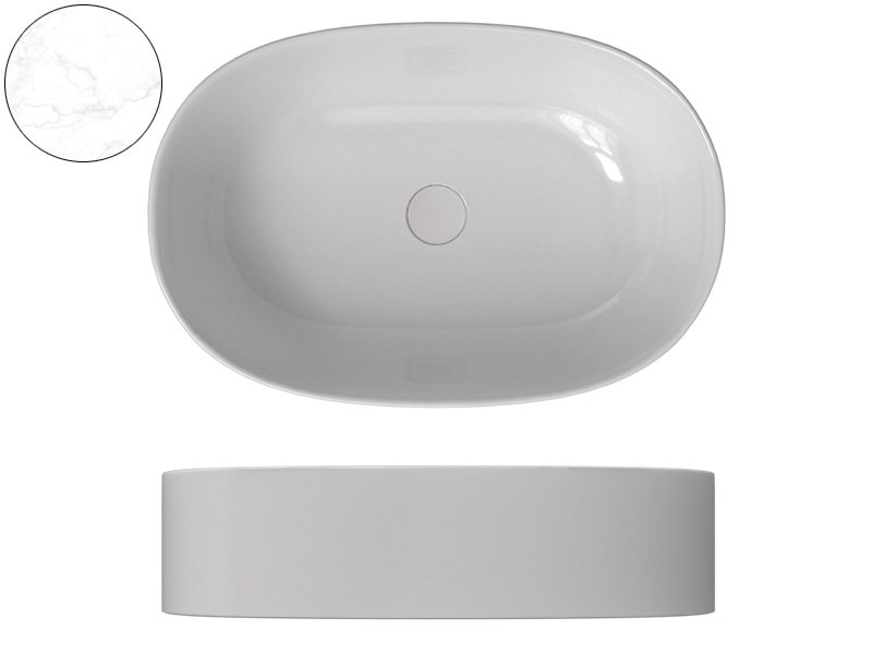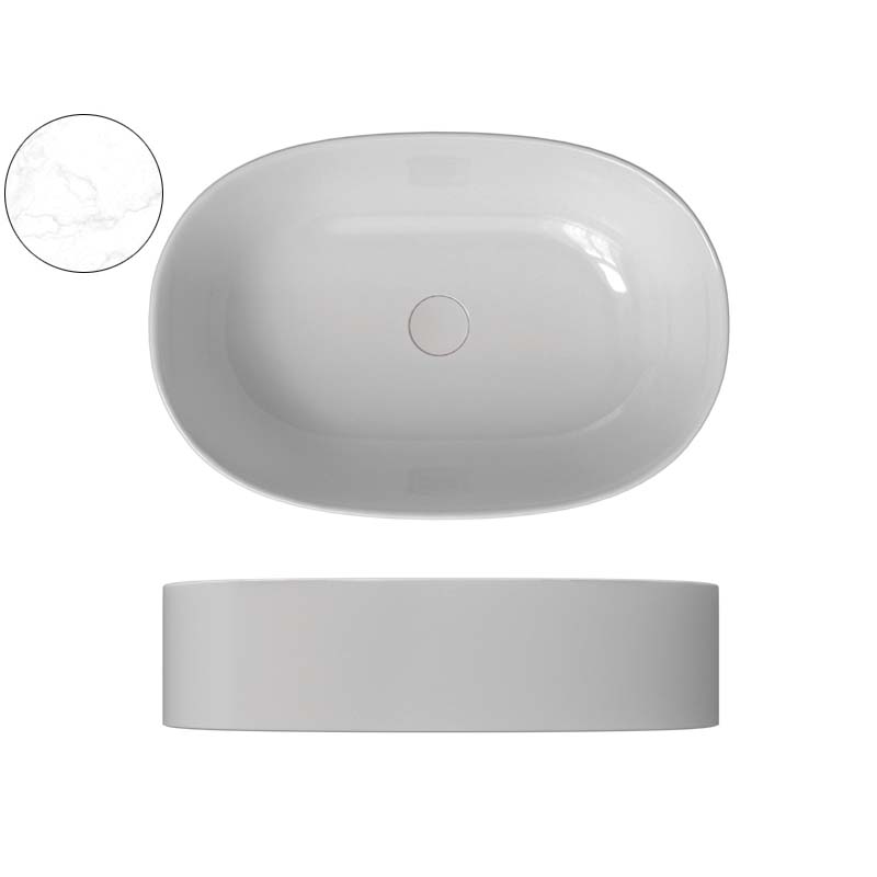 SCARABEO SKINNY 5409 Раковина накладная без отверстия под смеситель, без слива-перелива. Размеры: 60x40x15h см. Цвет Marble white.