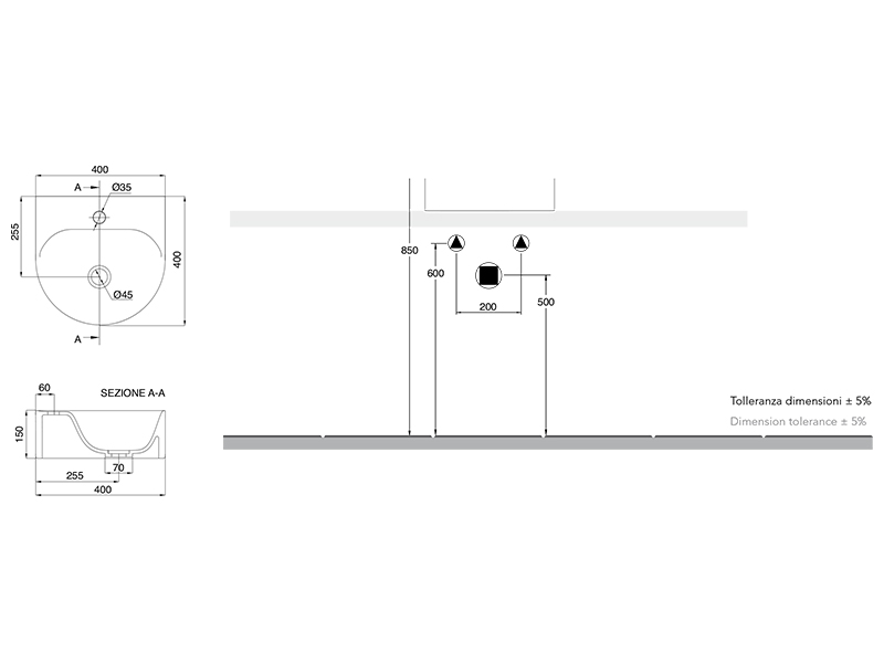SCARABEO SKINNY 5410 Раковина накладная с одним отверстием под смеситель, без слива-перелива. Размеры: 40x40x15h см. Цвет Pearl.