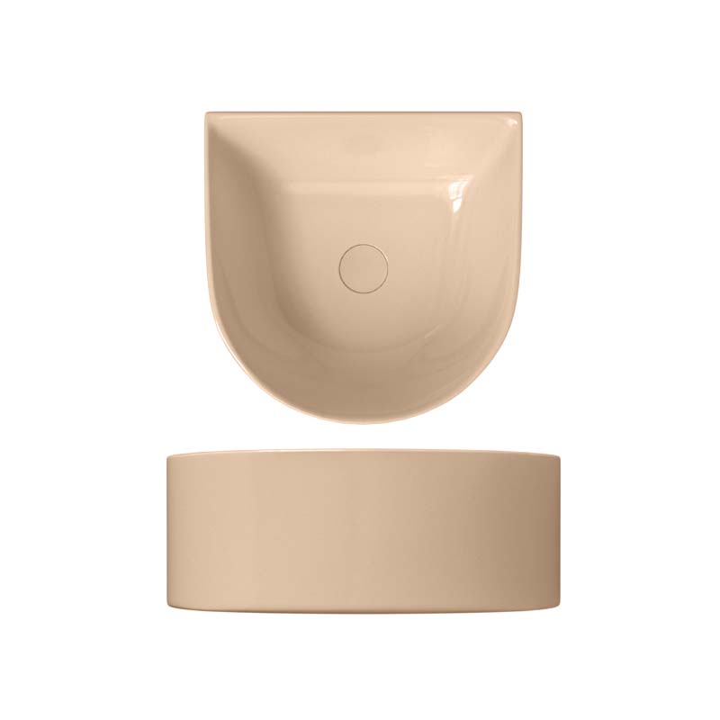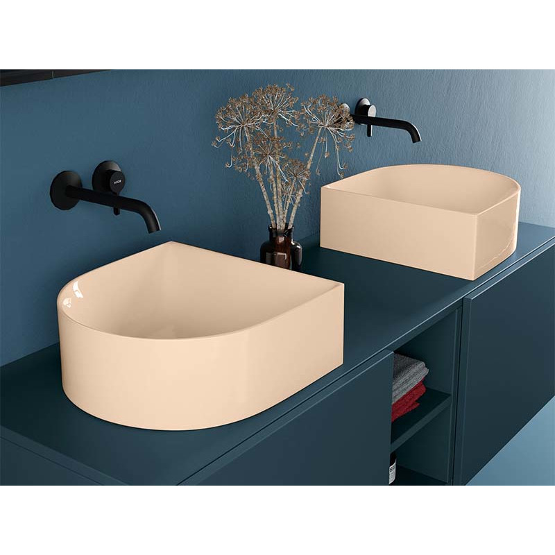 SCARABEO SKINNY 5411 Раковина накладная без отверстия под смеситель, без слива-перелива. Все стороны покрыты эмалью. Размеры: 40x40x15h см. Цвет Glossy Peach.