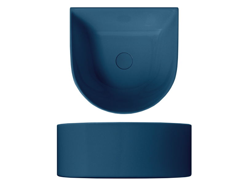 SCARABEO SKINNY 5411 Раковина накладная без отверстия под смеситель, без слива-перелива. Все стороны покрыты эмалью. Размеры: 40x40x15h см. Цвет Ocean.