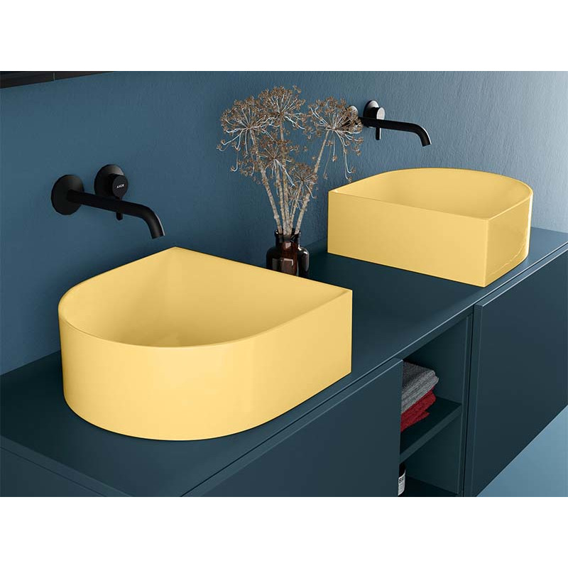 SCARABEO SKINNY 5411 Раковина накладная без отверстия под смеситель, без слива-перелива. Все стороны покрыты эмалью. Размеры: 40x40x15h см. Цвет Matt Lime.
