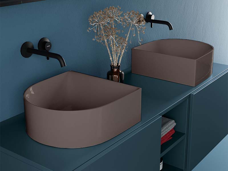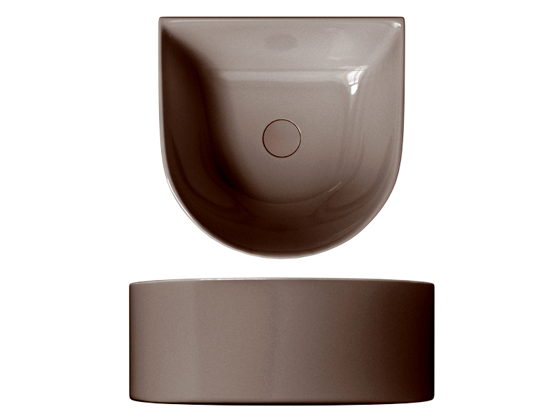 SCARABEO SKINNY 5411 Раковина накладная без отверстия под смеситель, без слива-перелива. Все стороны покрыты эмалью. Размеры: 40x40x15h см. Цвет Glossy Tobacco.