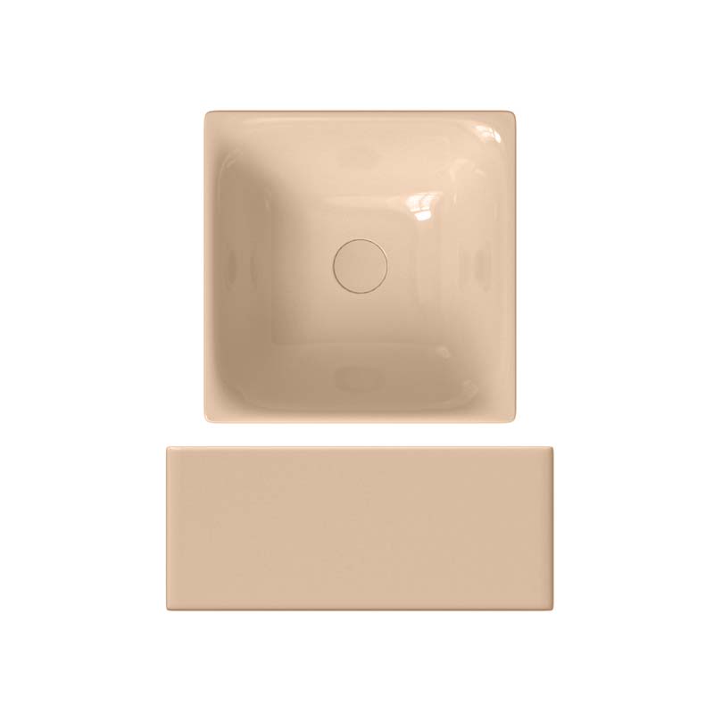 SCARABEO SKINNY 5412 Раковина накладная квадратная без отверстия под смеситель, без слива-перелива. Все стороны покрыты эмалью. Размеры: 36x36x15h см. Цвет Glossy Peach.