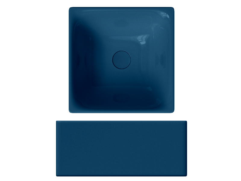 SCARABEO SKINNY 5412 Раковина накладная квадратная без отверстия под смеситель, без слива-перелива. Все стороны покрыты эмалью. Размеры: 36x36x15h см. Цвет Glossy Ocean.