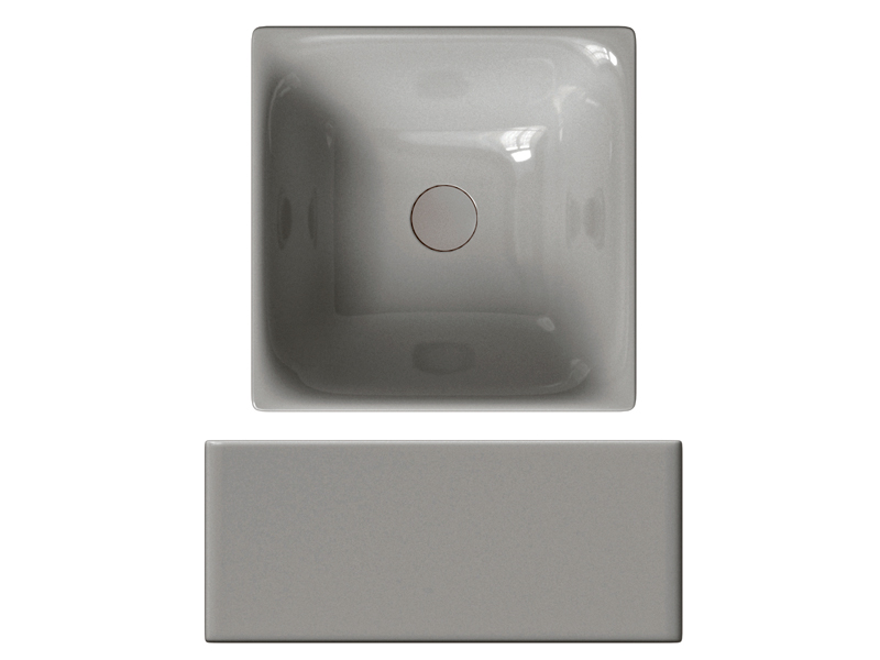 SCARABEO SKINNY 5412 Раковина накладная квадратная без отверстия под смеситель, без слива-перелива. Все стороны покрыты эмалью. Размеры: 36x36x15h см. Цвет Glossy Sand.