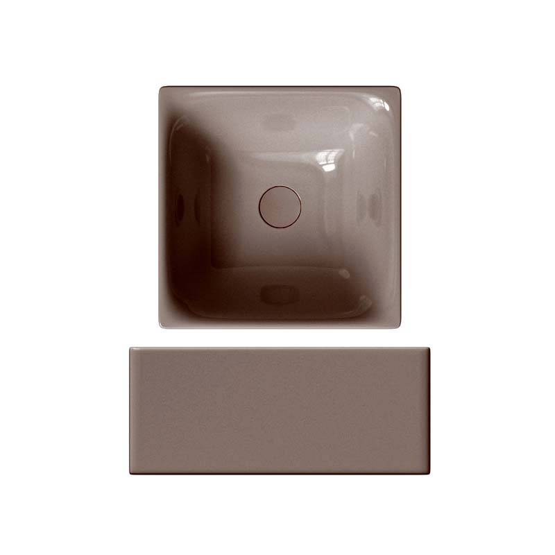SCARABEO SKINNY 5412 Раковина накладная квадратная без отверстия под смеситель, без слива-перелива. Все стороны покрыты эмалью. Размеры: 36x36x15h см. Цвет Glossy Tobacco.