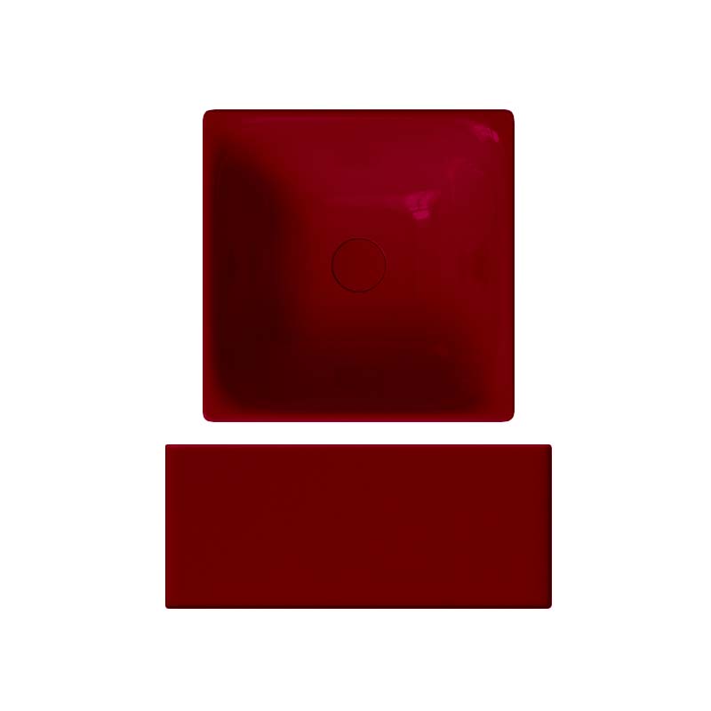 SCARABEO SKINNY 5412 Раковина накладная квадратная без отверстия под смеситель, без слива-перелива. Все стороны покрыты эмалью. Размеры: 36x36x15h см. Цвет Cherry.