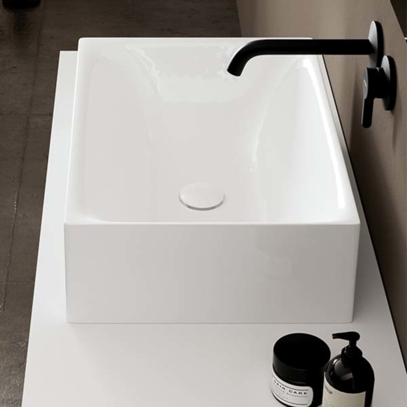 SCARABEO SKINNY 5413 Раковина накладная без отверстия под смеситель, без слива-перелива. Размеры: 50x36x15h см. Цвет White.