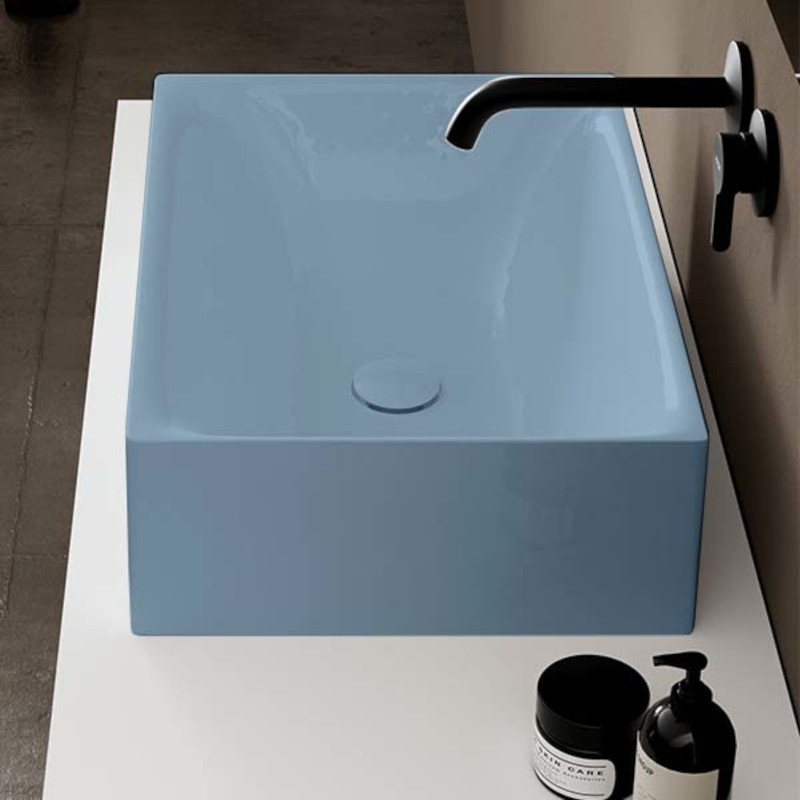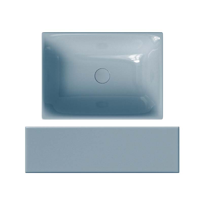 SCARABEO SKINNY 5413 Раковина накладная без отверстия под смеситель, без слива-перелива. Все стороны покрыты эмалью. Размеры: 50x36x15h см. Цвет Glossy Air.