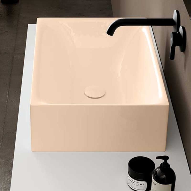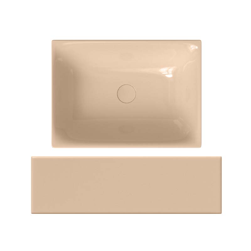 SCARABEO SKINNY 5413 Раковина накладная без отверстия под смеситель, без слива-перелива. Все стороны покрыты эмалью. Размеры: 50x36x15h см. Цвет Glossy Peach.