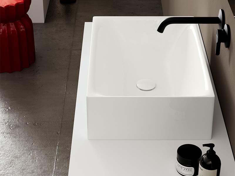 SCARABEO SKINNY 5413 Раковина накладная без отверстия под смеситель, без слива-перелива. Все стороны покрыты эмалью. Размеры: 50x36x15h см. Цвет Pearl.