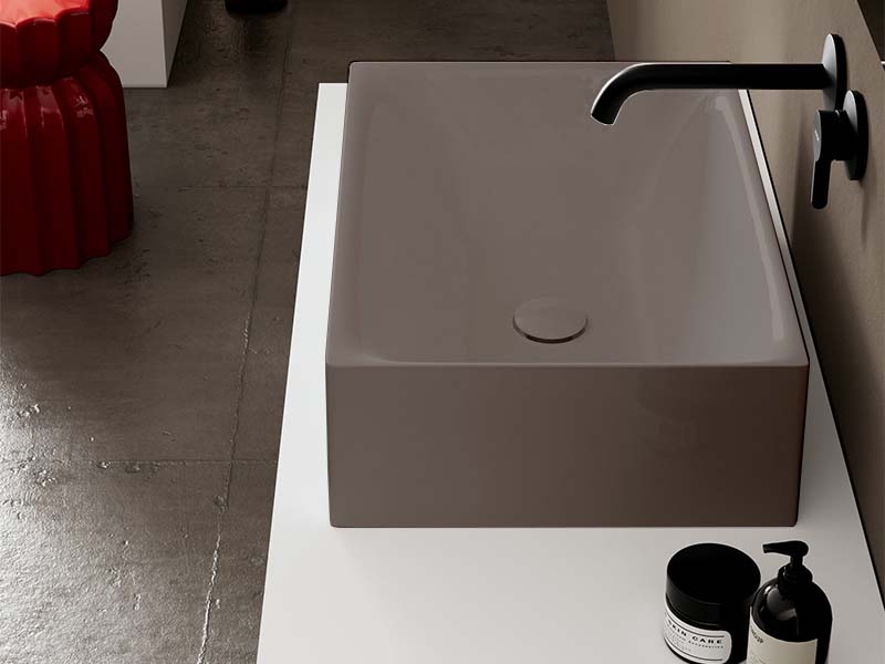 SCARABEO SKINNY 5413 Раковина накладная без отверстия под смеситель, без слива-перелива. Все стороны покрыты эмалью. Размеры: 50x36x15h см. Цвет Sand.