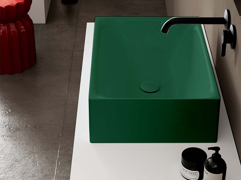 SCARABEO SKINNY 5413 Раковина накладная без отверстия под смеситель, без слива-перелива. Все стороны покрыты эмалью. Размеры: 50x36x15h см. Цвет Musk.