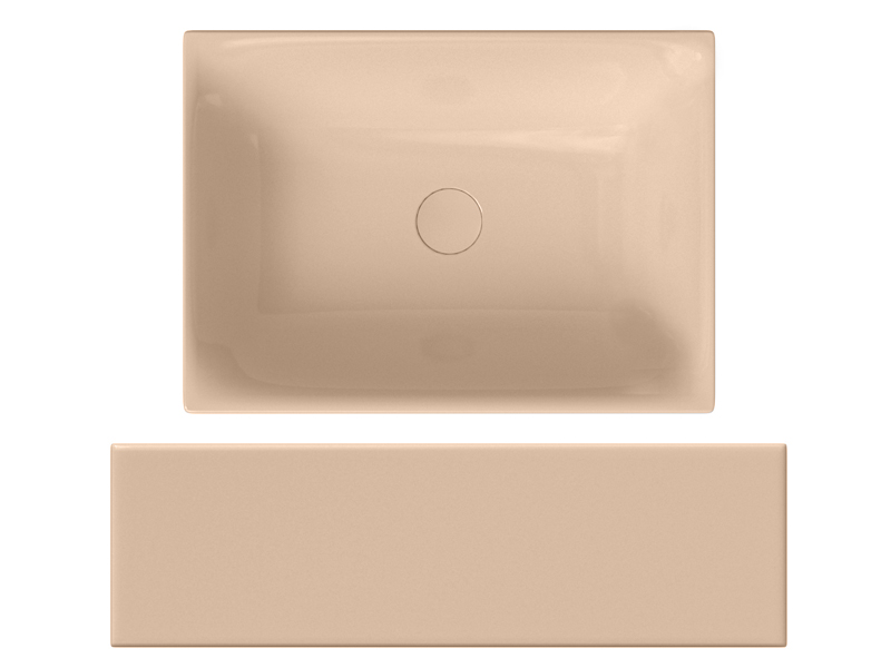 SCARABEO SKINNY 5413 Раковина накладная без отверстия под смеситель, без слива-перелива. Все стороны покрыты эмалью. Размеры: 50x36x15h см. Цвет Matt Peach.