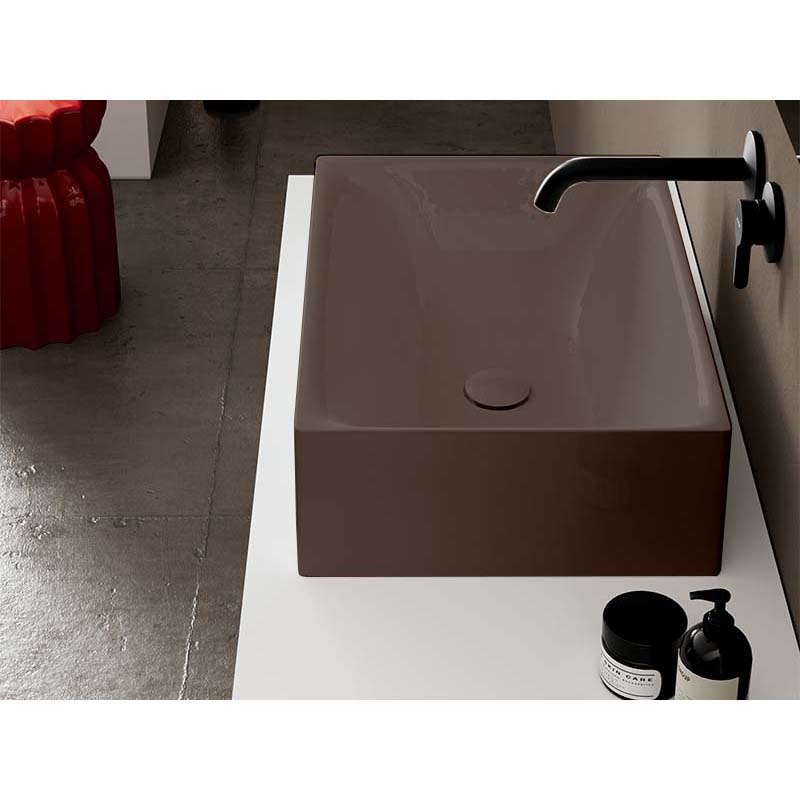 SCARABEO SKINNY 5413 Раковина накладная без отверстия под смеситель, без слива-перелива. Все стороны покрыты эмалью. Размеры: 50x36x15h см. Цвет Glossy Tobacco.
