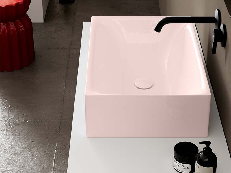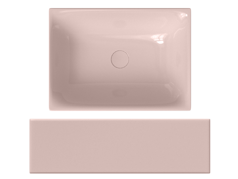 SCARABEO SKINNY 5413 Раковина накладная без отверстия под смеситель, без слива-перелива. Все стороны покрыты эмалью. Размеры: 50x36x15h см. Цвет Glossy Antique pink.