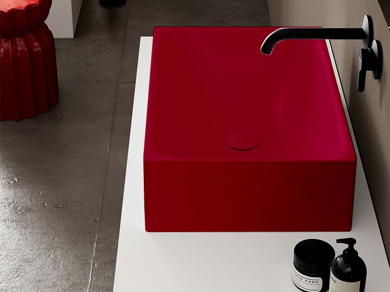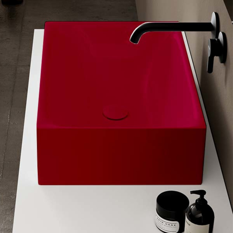 SCARABEO SKINNY 5413 Раковина накладная без отверстия под смеситель, без слива-перелива. Все стороны покрыты эмалью. Размеры: 50x36x15h см. Цвет Cherry.