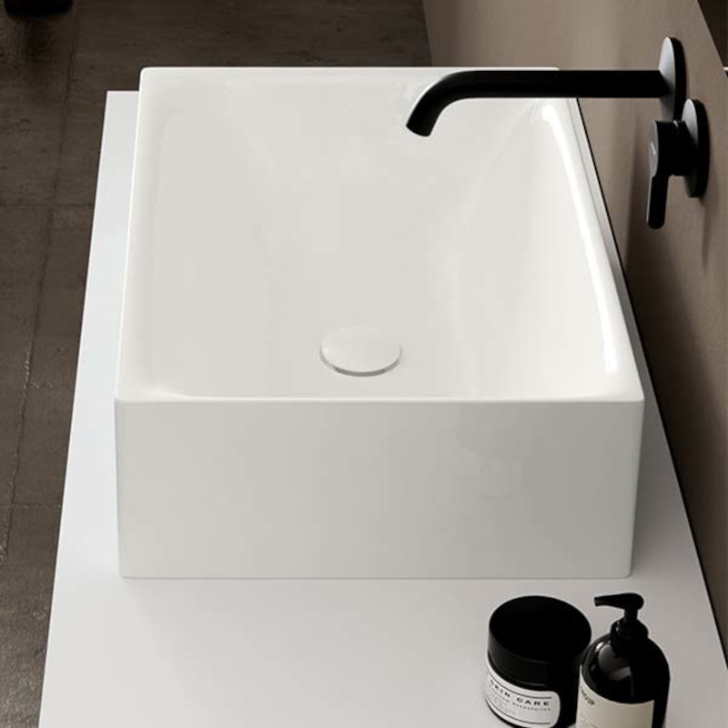 SCARABEO SKINNY 5414 Раковина накладная без отверстия под смеситель, без слива-перелива. Размеры: 60x36x15h см. Цвет Pearl.