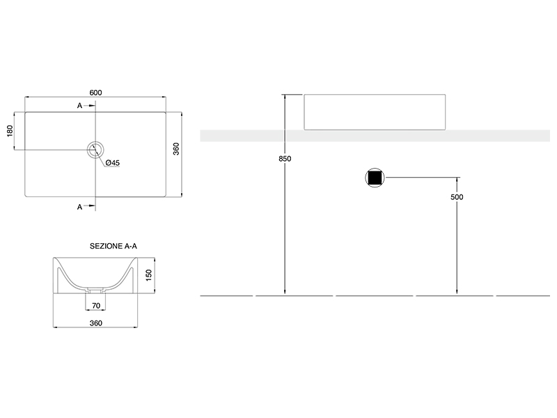 | Отверстие под смеситель | Отсутствует |