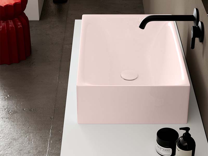 SCARABEO SKINNY 5414 Раковина накладная без отверстия под смеситель, без слива-перелива. Размеры: 60x36x15h см. Цвет Antique pink.