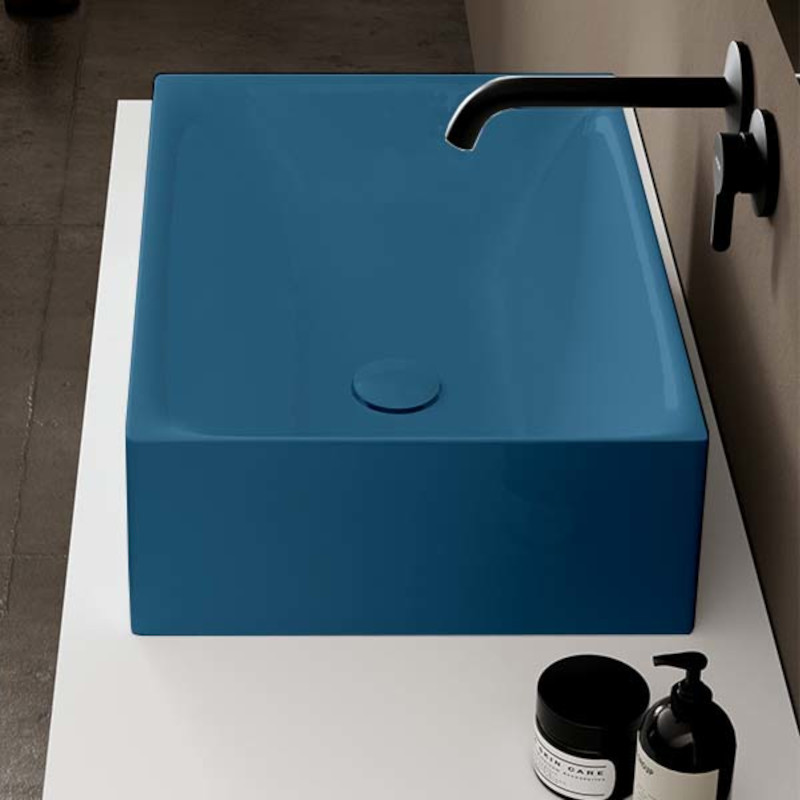 SCARABEO SKINNY 5414 Раковина накладная без отверстия под смеситель, без слива-перелива. Размеры: 60x36x15h см. Цвет Ocean.