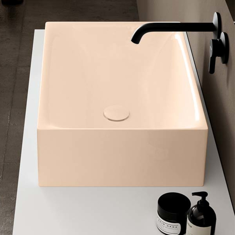 SCARABEO SKINNY 5414 Раковина накладная без отверстия под смеситель, без слива-перелива. Размеры: 60x36x15h см. Цвет Matt Peach.