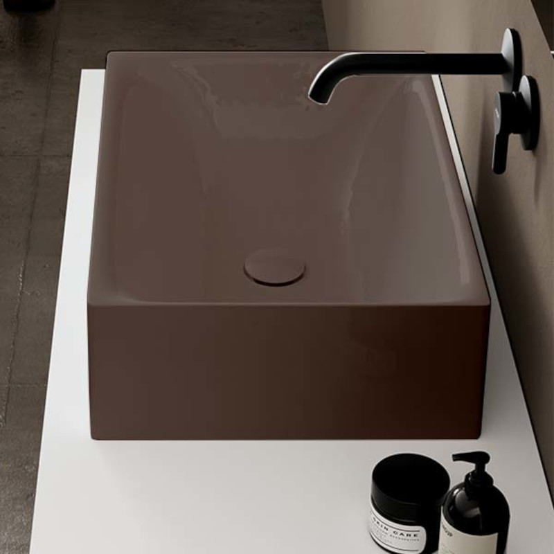 SCARABEO SKINNY 5414 Раковина накладная без отверстия под смеситель, без слива-перелива. Размеры: 60x36x15h см. Цвет Glossy Tobacco.