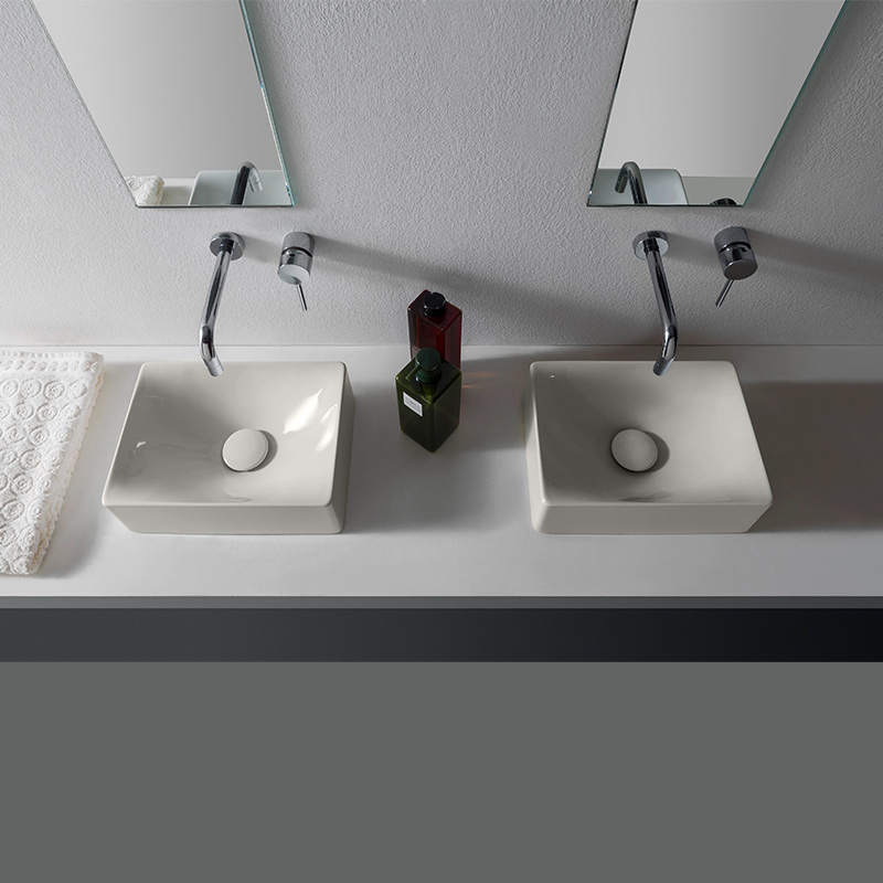 SCARABEO SOFT 1503 Раковина накладная без отверстия под смеситель, без пробки перелива. Рекомендуется установка на столешницу. Размеры: 30x22x10h см. цвет Pearl. Представленная модель раковины существует в различных цветовых решениях.