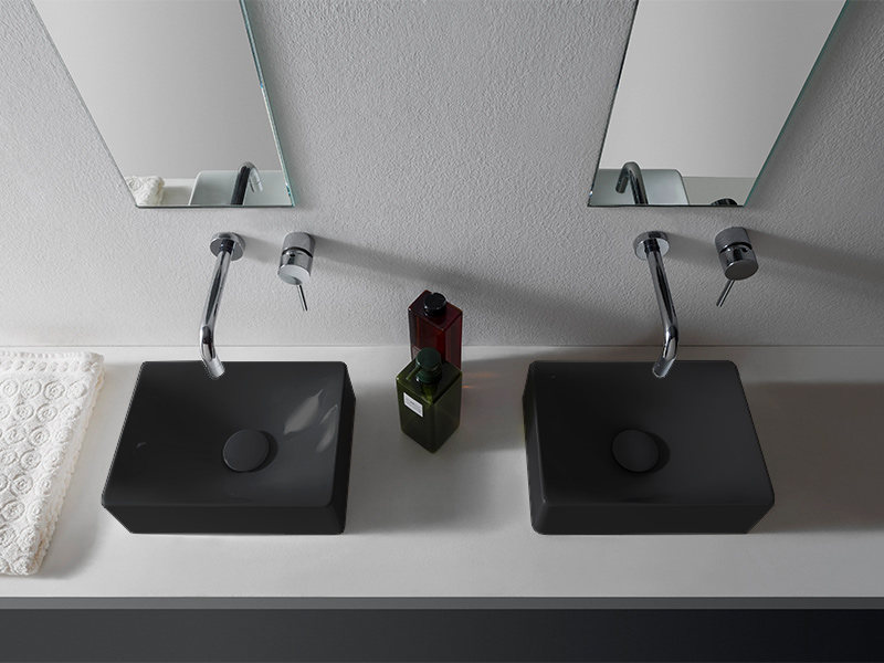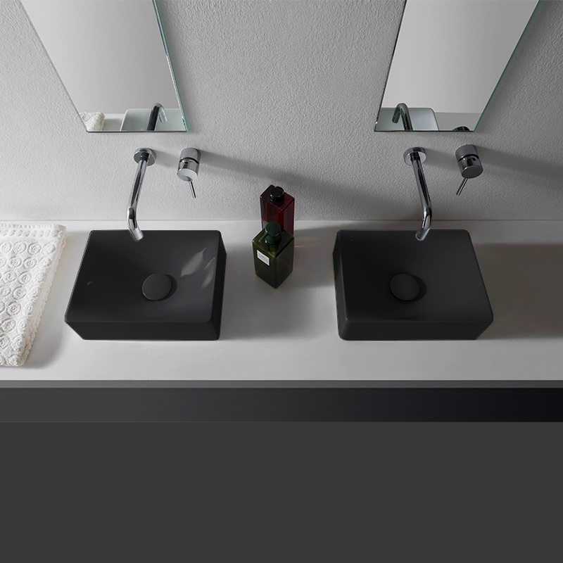 SCARABEO SOFT 1503 Раковина накладная без отверстия под смеситель, без пробки перелива. Рекомендуется установка на столешницу. Размеры: 30x22x10h см. цвет Ardesia. Представленная модель раковины существует в различных цветовых решениях.