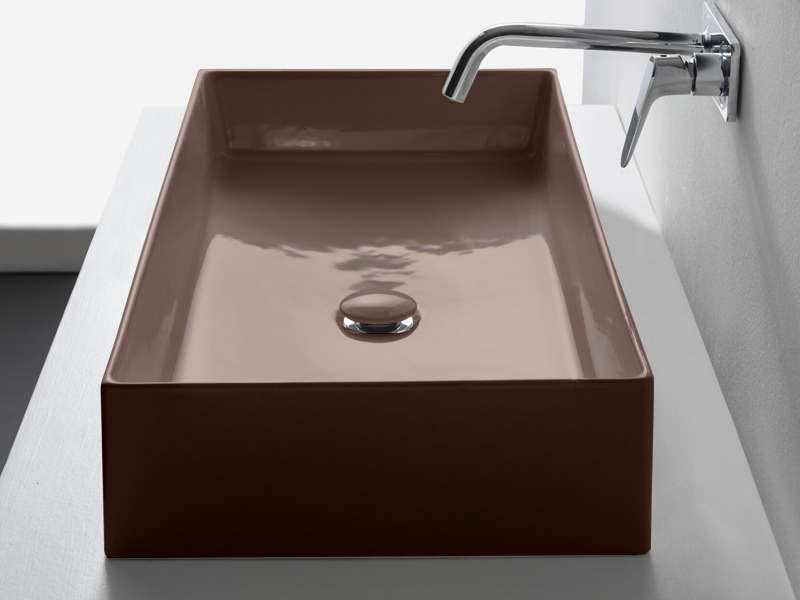 SCARABEO TEOREMA 5101 Раковина накладная без отверстия под смеситель, без перелива. Размеры: 60x40x14h см. Рекомендуется установка на столешницу. Цвет Glossy Tobacco.