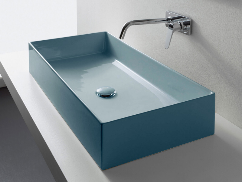 SCARABEO TEOREMA 2.0 5102 Раковина накладная без отверстия под смеситель, без слива-перелива. Размеры: 80x40x14h см. Со всех сторон покрыта эмалью. Рекомендуется установка на столешницу. Цвет Glossy Air.
