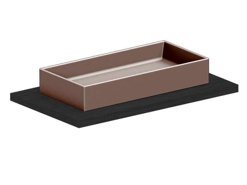 SCARABEO TEOREMA 2.0 5102 Раковина накладная без отверстия под смеситель, без слива-перелива. Размеры: 80x40x14h см. Со всех сторон покрыта эмалью. Рекомендуется установка на столешницу. Цвет Glossy Tobacco.