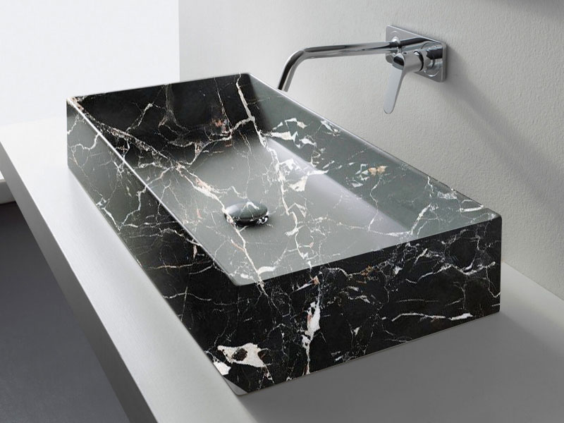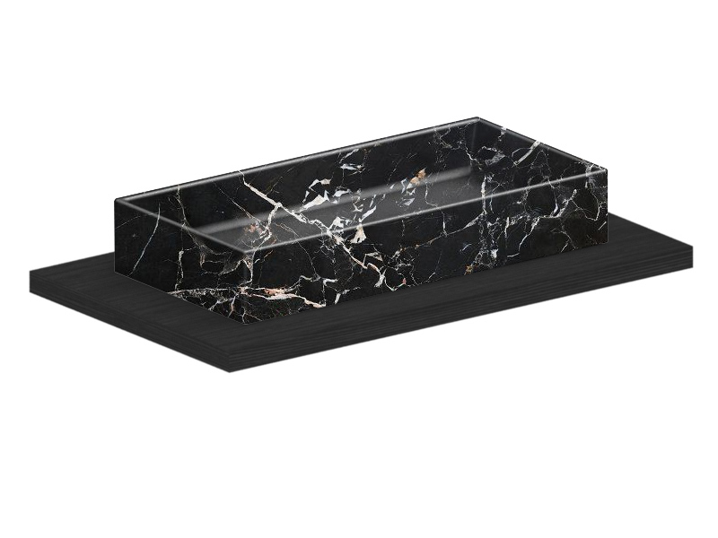 SCARABEO TEOREMA 2.0 5102 Раковина накладная без отверстия под смеситель, без слива-перелива. Размеры: 80x40x14h см. Со всех сторон покрыта эмалью. Рекомендуется установка на столешницу. Цвет Marble Black.