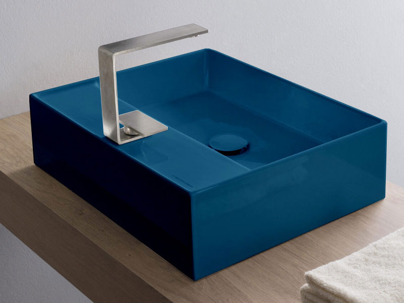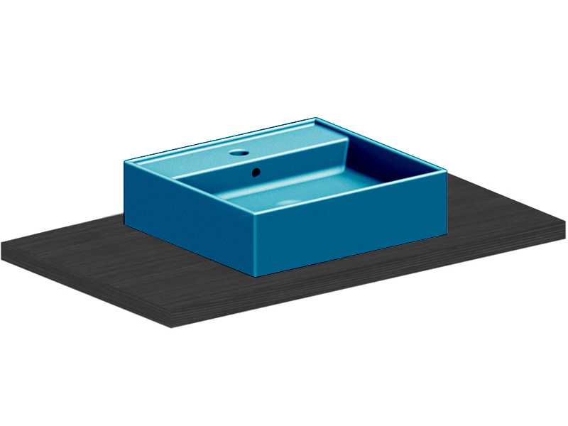 SCARABEO TEOREMA 2.0 5112 Раковина накладная с одним отверстием под смеситель, с сливом - переливом. Все стороны покрыты эмалью, рекомендуется установка на столешницу. Перелив входит в комплект. Размеры: 50,5x38,5x14h см. Цвет Glossy Ocean.