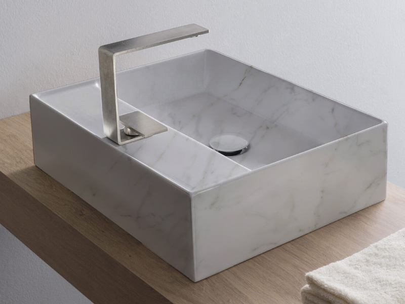 SCARABEO TEOREMA 2.0 5112 Раковина накладная с одним отверстием под смеситель, с сливом - переливом. Все стороны покрыты эмалью, рекомендуется установка на столешницу. Перелив входит в комплект. Размеры: 50,5x38,5x14h см. Цвет Marble White.