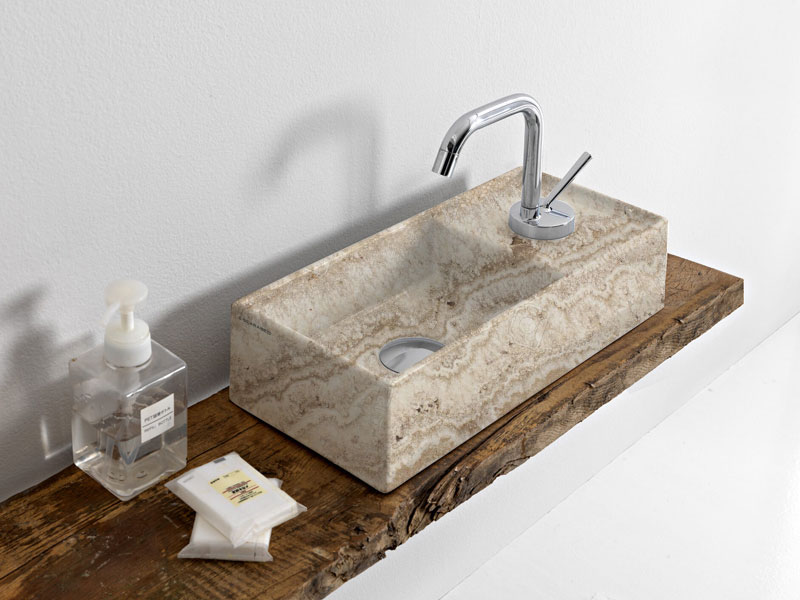 SCARABEO TEOREMA 2.0 5129 Раковина накладная прямоугольная. Справа одно отверстие под смеситель, без слива-перелива. Все стороны покрыты эмалью. Рекомендуется установка на столешницу. Размеры: 41x19x10h см. Цвет Travertine.