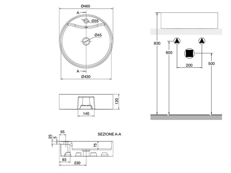 SCARABEO THIN-LINE CONO 8010 Раковина накладная без отверстия под смеситель, без перелива. Размеры: 42x42x15h см. Рекомендуется установка на столешницу. Цвет White.