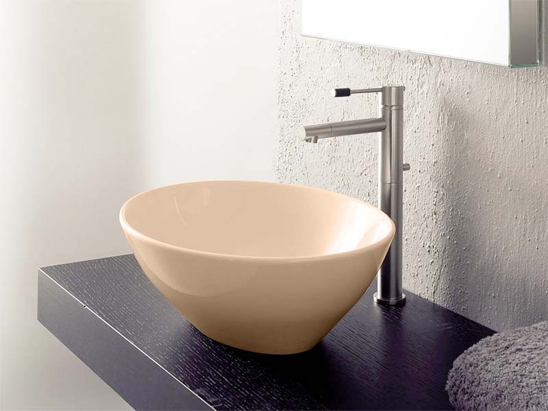 SCARABEO THIN-LINE OVO 8011 Раковина накладная без отверстия под смеситель, без перелива. Размеры: 41x33,5x14h см. Рекомендуется установка на столешницу. Цвет Glossy Peach.