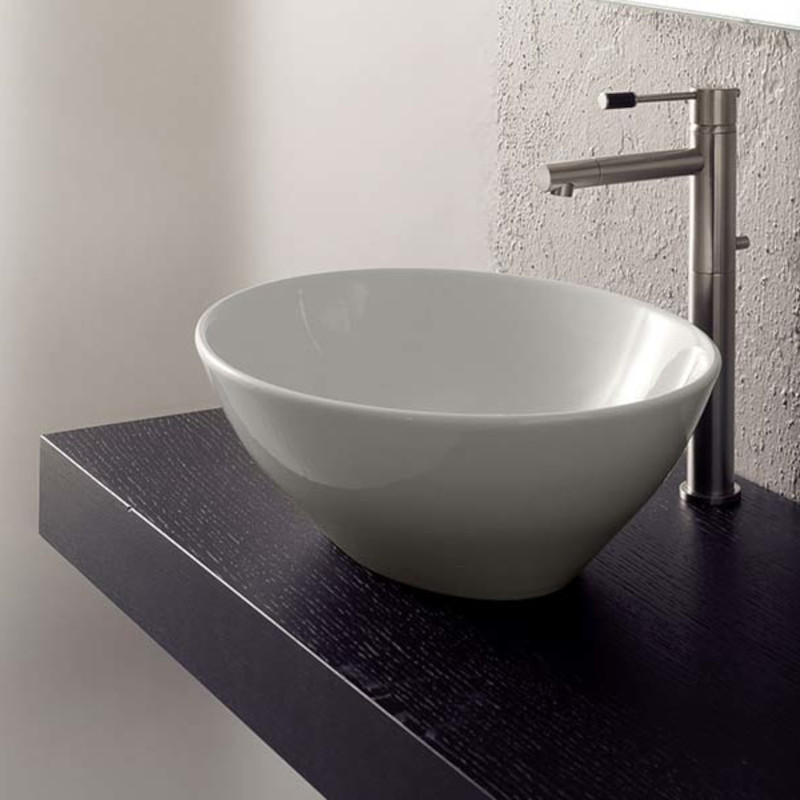 У овальной накладной раковины SCARABEO THIN-LINE 8011/41 нет отверстия под смеситель. Эта функция может быть полезна в случаях, когда требуется установка смесителя на столешницу или стену.