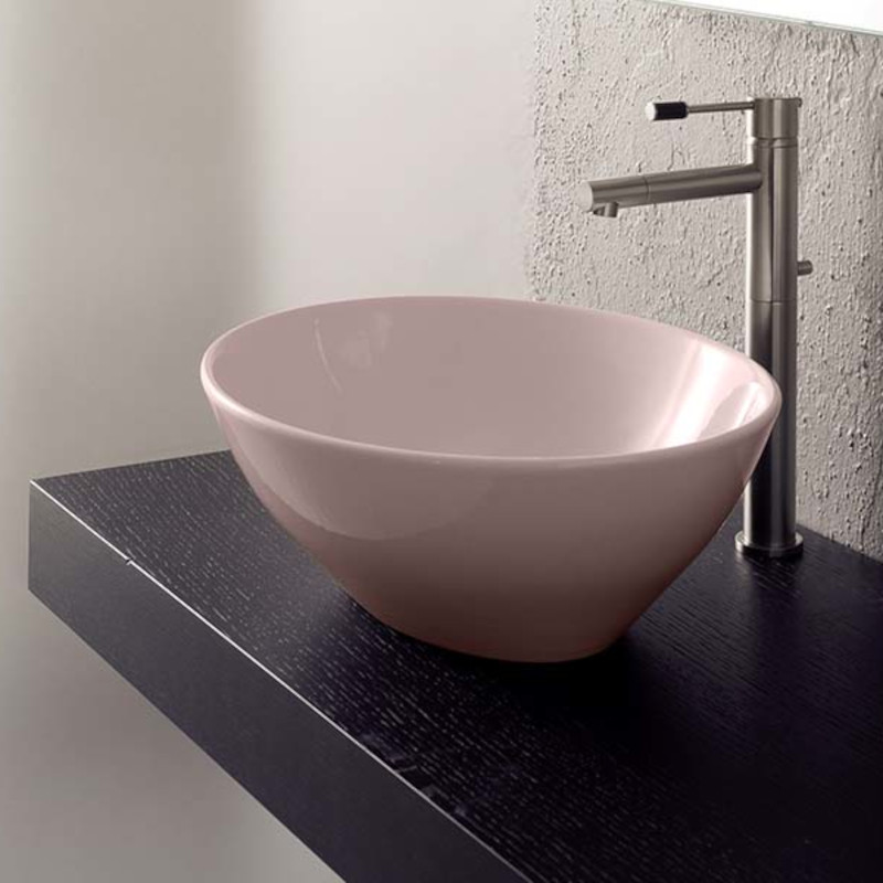 SCARABEO THIN-LINE OVO 8011 Раковина накладная без отверстия под смеситель, без перелива. Размеры: 41x33,5x14h см. Рекомендуется установка на столешницу. Цвет Antique pink.