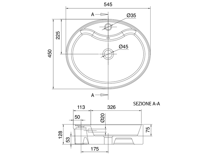 Раковина THIN-LINE 8030/R оснащена одним отверстием под смеситель и переливом, что делает ее использование удобным и практичным. Ее компактные размеры 54,5x45x13 см и овальная форма идеально подходят для установки на столешницу, что позволяет оптимально использовать пространство в ванной.