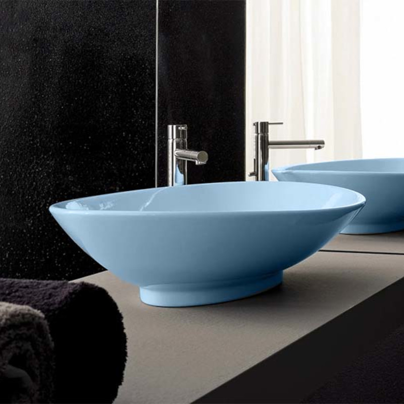 SCARABEO NECK 8045 Раковина накладная без отверстия под смеситель, без перелива. Размеры: 63x45x15h см. Рекомендуется установка на столешницу. цвет Glossy Air.