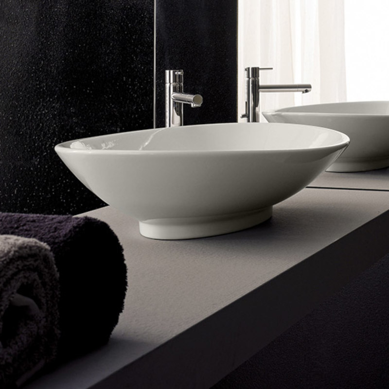 SCARABEO NECK 8045 Раковина накладная без отверстия под смеситель, без перелива. Размеры: 63x45x15h см. Рекомендуется установка на столешницу. Цвет Pearl.