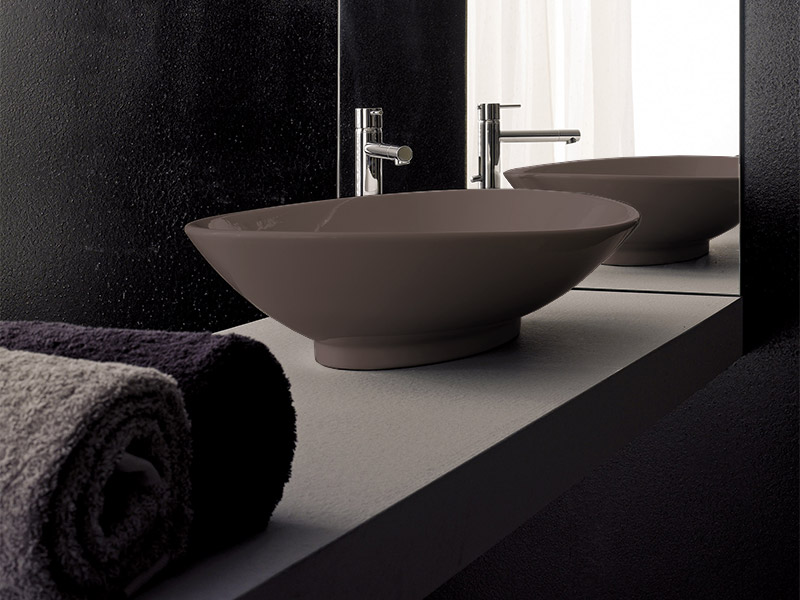 SCARABEO NECK 8045 Раковина накладная без отверстия под смеситель, без перелива. Размеры: 63x45x15h см. Рекомендуется установка на столешницу. Цвет Tobacco.