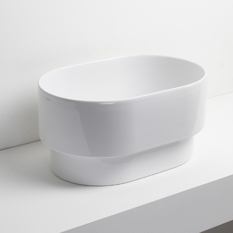 Раковина PO.MO PO 04 имеет овальную форму и компактные размеры (50 x 33 см), что позволяет экономить пространство и облегчает процесс установки. Она легко монтируется на поверхность столешницы или тумбы, что делает ее идеальным выбором для небольших ванных комнат. Так же раковина имеет основание 9 см и может быть установлена как полувстроенная.