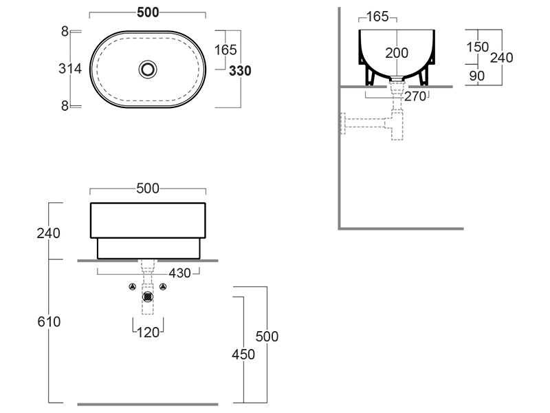 Раковина PO.MO PO 04 имеет овальную форму и компактные размеры (50 x 33 см), что позволяет экономить пространство и облегчает процесс установки. Она легко монтируется на поверхность столешницы или тумбы, что делает ее идеальным выбором для небольших ванных комнат. Так же раковина имеет основание 9 см и может быть установлена как полувстроенная.